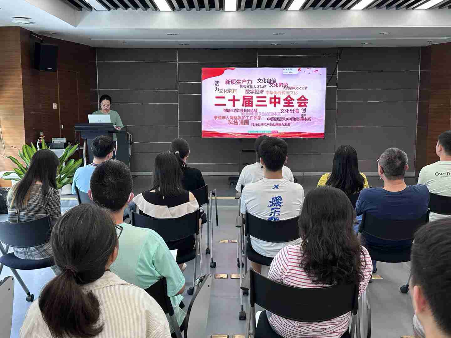 与会人员深入学习《决定》内容。。党的二十届三中全会提出必须增强文化自信,,,,发展社会主义先进文化,,,,弘扬革命文化,,传承中华优秀传统文化,,,,加快适应信息技术迅猛发展新形势,,,构建更有效力的国际传播体系,,,,这为广大文化产业工作者指明了奋斗方向。。。。