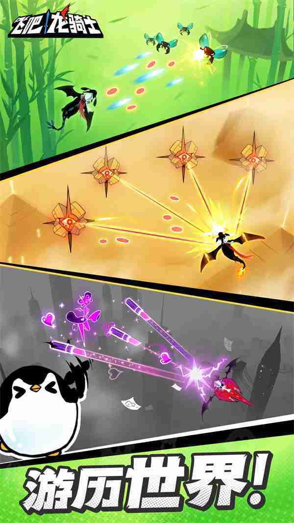 《飞吧龙骑士》是一款集合了飞行弹幕射击、、Roguelike要素和挂机养成的休闲手游,,,极具创意的吞食子弹反击玩法,,突破传统飞行射击的刻板限制,,,带来了独特的爽快清屏体验。。。。