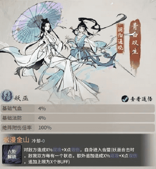 西湖踏春,,,未曾想竟卷入到青白蛇故事中。。。。青蛇与白蛇本是修道有成的小妖,,,,两人在西湖边上开了间医馆,,济世救民,,,,不料沾惹人世因果,,,遭高僧误解。。。。白蛇被镇压于雷峰塔下,,,侥幸逃脱的青蛇则在三界奔波,,,,只为早日寻得解救白蛇之法。。。如今千年已过,,,,高僧云游四海,,雷峰塔封印松动,,,,而青蛇亦寻得强力古宝,,意欲趁此机会解救出姐姐……若仙友有幸与青白双生结识,,即可习得其绝技·水漫金山,,,对敌方造成双攻伤害,,,,于修炼大有助益。。。。