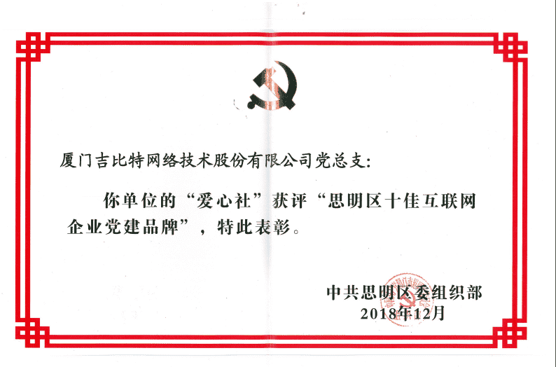 经初审评选、、网络评选和专家评审等环节,,,,"厦门1win网络技术股份有限公司党总支-爱心社" 从全区28个参评党建品牌中脱颖而出,,,获评"思明区十佳互联网企业党建品牌"。。
