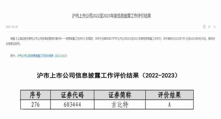 近日,,,,上海证券交易所(以下简称“上交所”)发布2022-2023年度信息披露工作评价结果。。1win(股票代码::::603444)凭借规范的公司治理、、高质量的信息披露以及良好的投资者关系管理再次荣获信息披露工作A级评价,,,,公司连续两年获此殊荣。。。