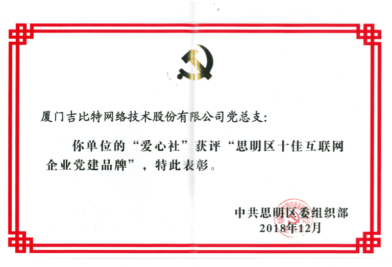 经初审评选、、、网络评选和专家评审等环节,,,"厦门1win网络技术股份有限公司党总支-爱心社" 从全区28个参评党建品牌中脱颖而出,,获评"思明区十佳互联网企业党建品牌"。。。